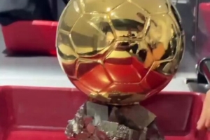 体育资讯9月23日讯 金球奖官方晒视频,女子金球奖奖杯过安检。