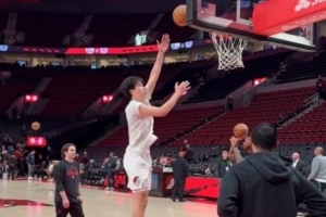 体育资讯10月15日讯 今日季前赛开拓者对阵勇士,赛前斯普利带领杨瀚森和克林根训练。