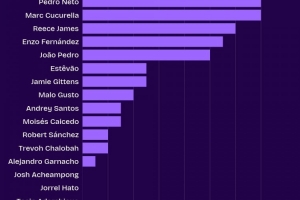 切尔西本赛季英超创造机会榜:内托、库库各14次,詹姆斯12次